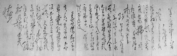 诗是连贯地写在七页十六开纸上的,每页的右上角都标有阿拉伯数字的序号。毛泽东这次是用一分笔毫的锋尖行笔,乍一看去好似硬笔书法,而且是他本人在诗词创作中较少使用的横写形式。由于是即兴之作,还没有誊清,毛泽东的这件手稿便有多处添加、涂抹和修改之处。通篇看来,有行无列,字体忽大忽小,似乎根本顾及不到字与字、行与行之间的距离。一般情况下,书家的运笔笔画与情绪大有联系,高兴、愉悦时笔画细而轻快,悲哀、激愤时笔划粗而凝重,毛泽东的这幅作品也说明了这一点。他的字落笔快疾轻捷,线条细劲圆转,完全是以意为法,以情驭笔。字立纸上,犹如大珠小珠落玉盘,鲜活飞动,激情荡漾,或像游丝回风,或像龙蛇飞舞,大有怀素的狂草笔意。可以说,这一手迹是毛泽东所有书法作品中笔墨意境与诗作内容完美统一的典范之作,并且不是刻意为之的即兴之作,给人以亲切感,并在感情上引起读者的强烈共鸣。