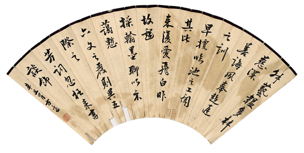 其实方还的书法早年并非师法颜真卿。昆仑堂美术馆藏有其36岁(光绪辛丑,即1901年)时所书的行书扇面一帧,书法瘦劲娴熟,用笔峻利爽健,结体精整紧密,饶有小欧《道因法师碑》的意趣,看不出有半丝颜真卿的影子。可以推测,方氏早年学的是欧字而并非颜字。民国二年(1912)方还为南社胡石予《近游图》题跋[3],书风显然和十年前大不一样,起笔裹锋入纸,点画圆浑遒劲,颜书的特征已很明显,唯结体略显严谨紧结,尚留欧书遗意。其实即便是方氏晚年的书法作品中,仍然保留着欧书的某些特征。可见方还由欧转学颜,重在作笔法的调整而不在求形态的酷似。和同为学颜的翁同龢、谭延闿诸人相较,取舍不同是显而易见的。