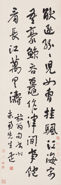 方还对颜真卿书法的研习可谓是倾其毕生心力,至老尤笃。其50岁后所书《墨翻笔挟七言联》(见封二),化楷为行,有飞动之势,笔墨老健,显示出其深厚的颜书功力。64岁时所作《临颜真卿争坐位帖》则姿态雍容,不拘形似而神完意足。可能是受何绍基等人的影响,方还书法并没有死抱住颜真卿一家不放,而是不断地广征博采,古为我用,力求融会贯通,逐渐形成了自家古厚、奇拙的书风。从其50岁以后的作品来看,他除了取法颜真卿,还学过苏轼、黄庭坚以及刘墉、何绍基诸家,并探源于汉魏六朝。其《圣功归求楷书五言联》(见封三),《纵横静坐楷书八言联》很明显取法的是北碑。《行书陆游诗轴》用笔由北碑派生而出。取势或方或圆,或欹或侧,字形奇拙,变化无常。66岁时所作的《黄山谷跋语行书四条屏》书风已明显跳出了颜书的樊篱,糅合碑帖的用笔,跌宕起伏,沉稳而不拖沓,流畅而无浮滑,随势取形,不主雕琢,即所谓“古拙绝伦”是也。《塾师诗轴》取势上呼下应,左盘右旋,端庄杂流丽,刚健含婀娜,在不经意中妙绪环生,碑派行书能达此境界,在晚清的书家中也是不多见的。