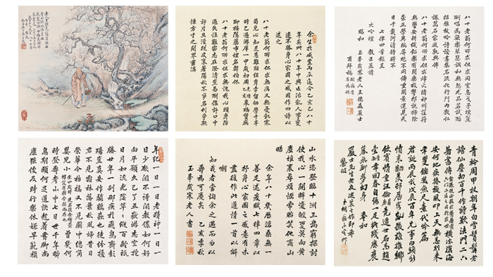 二 昆仑堂美术馆藏有一套王德森杖朝之年自己与友人唱酬书画册页,王德森自题:“岁寒老人八十自述诗并谐友画图题咏合册,乙亥(1935)冬日忘翁自题。”这套册页不仅反映了王德森的人生态度而且也印证了苏州这方水土,是滋养着深厚文化和历史底蕴的人文渊薮之名城,具有较高的史料价值。